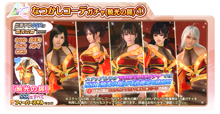 それ以外の「なつかしコーデガチャ(暁光の錦)」のステップ数も増加いたします!