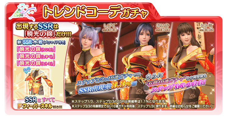 ※本ガチャで登場するSSR水着「暁光の錦(ヒトミ)」「暁光の錦(しずく)」「暁光の錦(れいか)」は、