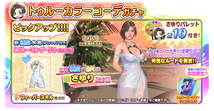 ※「トゥルーカラーコーデガチャ(さゆり)」は「10連ガチャ限定」「有償Vストーン限定」となります。