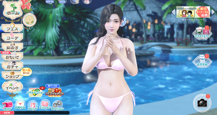 ※アクセサリや髪型、リップ機能など水着以外の見た目を変更するには