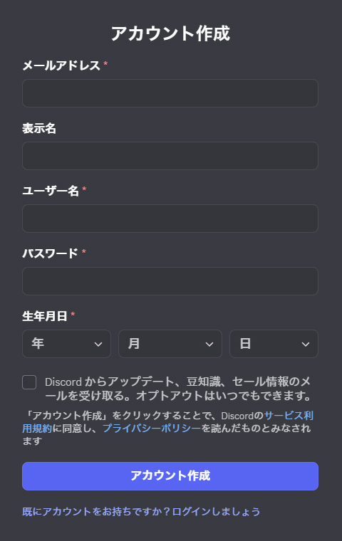 ② Discordアプリをインストール後、アプリを起動してユーザー登録を行う。