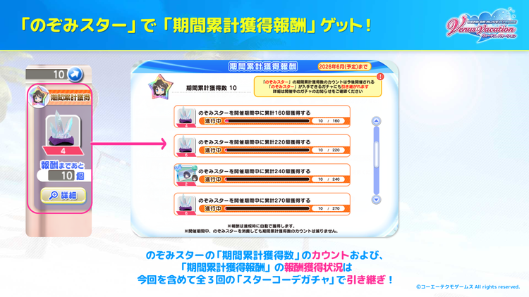 「のぞみスター期間累計獲得報酬」は2026年6月頃(予定)までに開催予定の