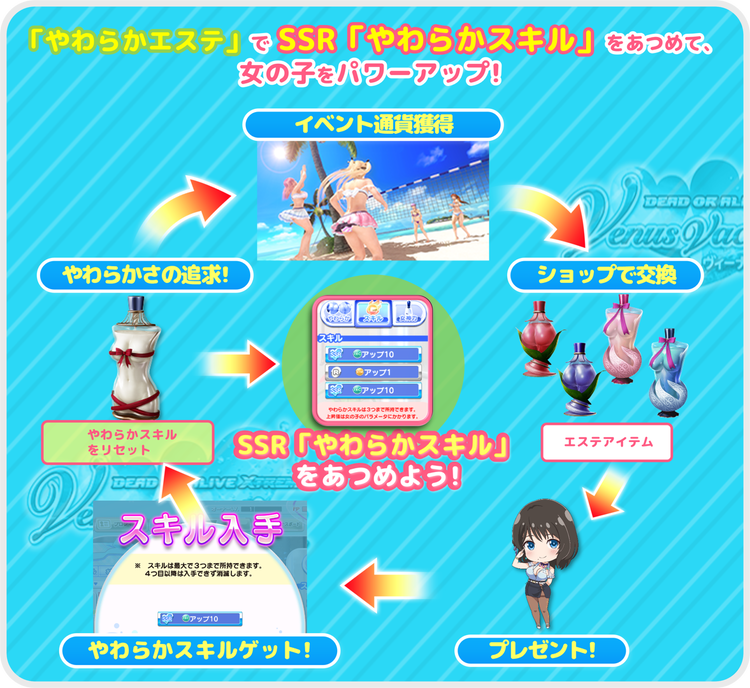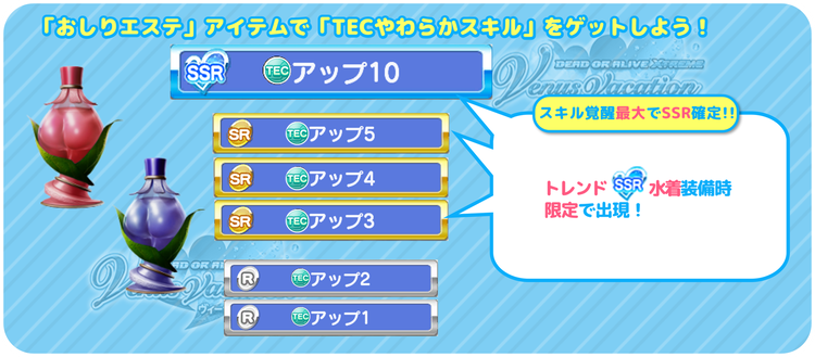 ※トレンドSR水着を装備時、覚醒段階によってやわらかエステの効果は変わりません。