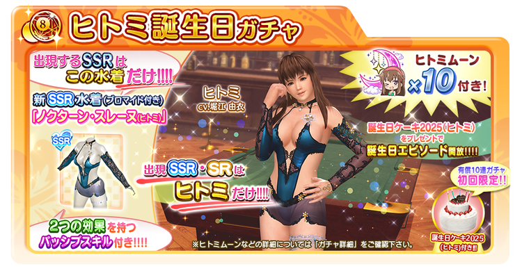 「ヒトミ誕生日ガチャ」から登場するSSR水着は、