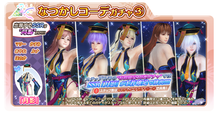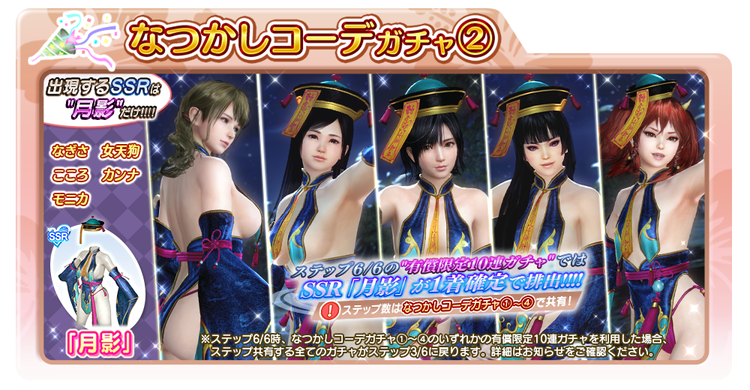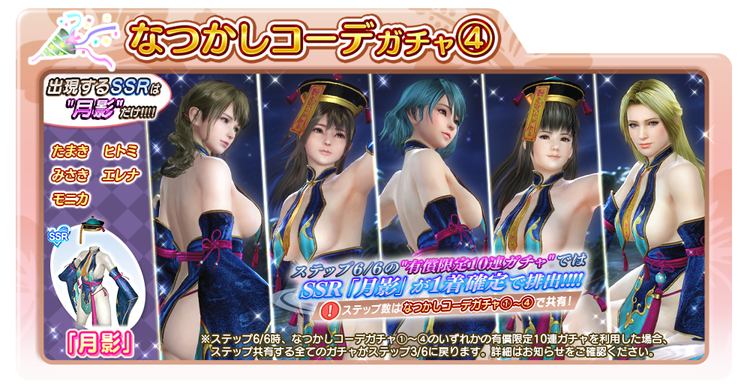 過去に登場した「月影」が、4種類の「なつかしコーデガチャ」として再登場!