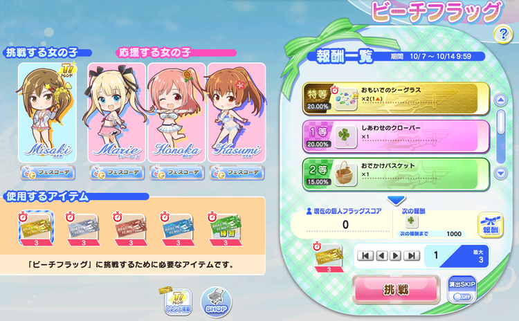 ※2025/10/14(火) 10:00以降、各ランクの「ビーチフラッグ挑戦券」は使用できなくなります。