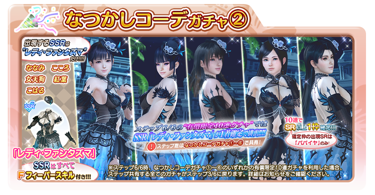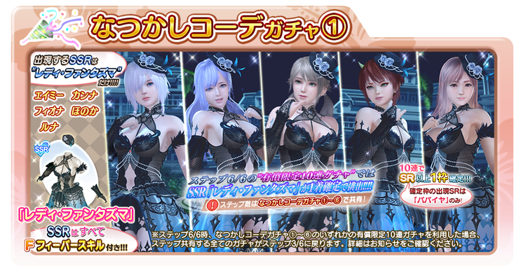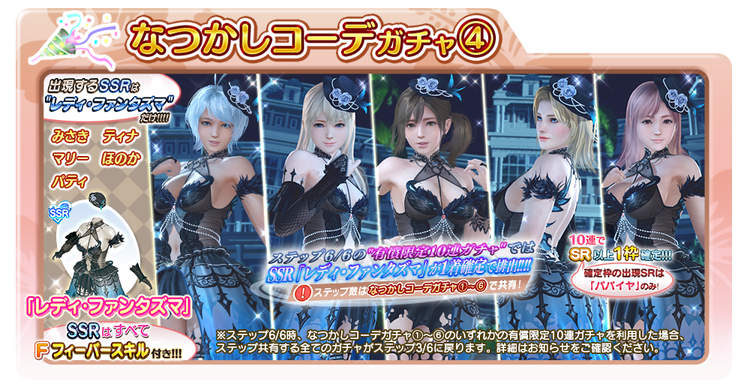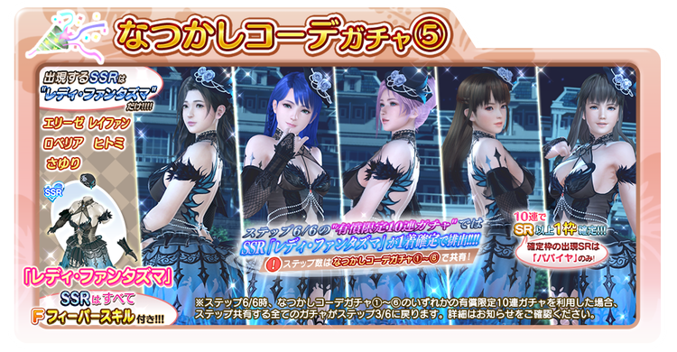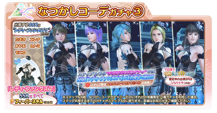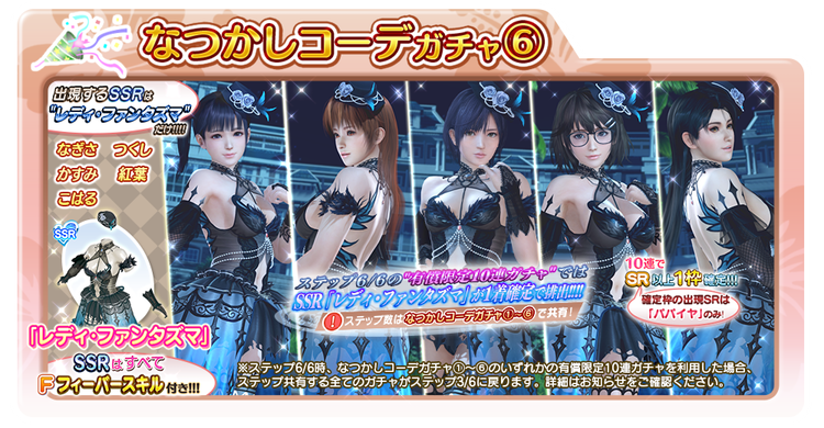 過去に登場した「レディ・ファンタズマ」が、6種類の「なつかしコーデガチャ」として再登場!
