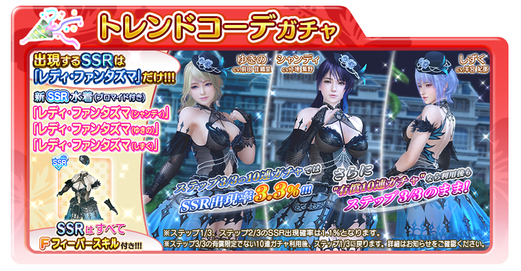 ※本ガチャで登場するSSR水着「レディ・ファンタズマ(シャンディ)」「レディ・ファンタズマ(ゆきの)」