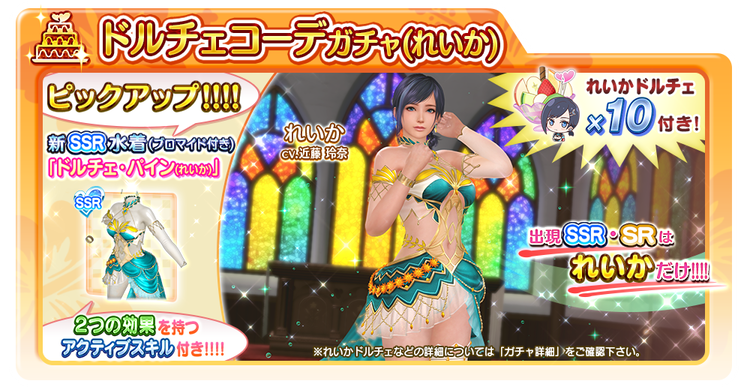 ※「ドルチェコーデガチャ(れいか)」は「10連ガチャ限定」「有償Vストーン限定」となります。