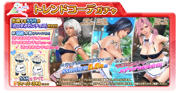 ※本ガチャで登場するSSR水着「おつまみピンチョス(パティ)」「おつまみピンチョス(エリーゼ)」