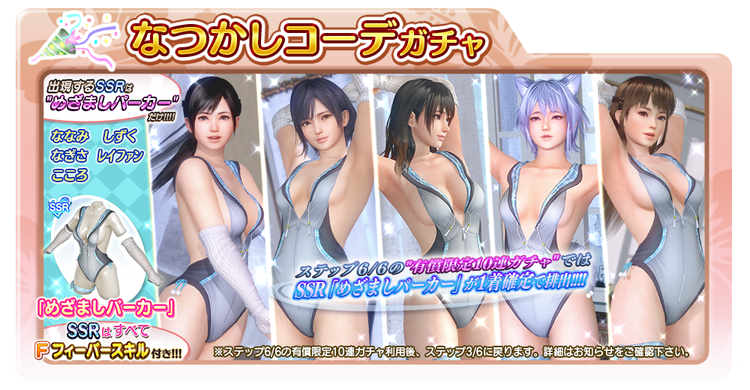 ※本ガチャで登場するSSR水着「めざましパーカー」は、