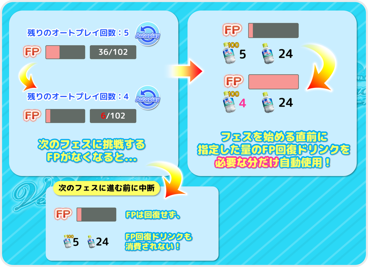 フェスの「オートプレイ」「オートチャレンジ」中に