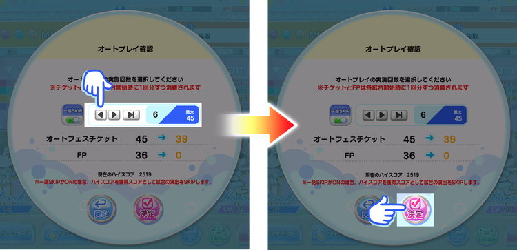 ※「オートフェスチケット」を所持していない場合、オートプレイ確認画面には移動しません。
