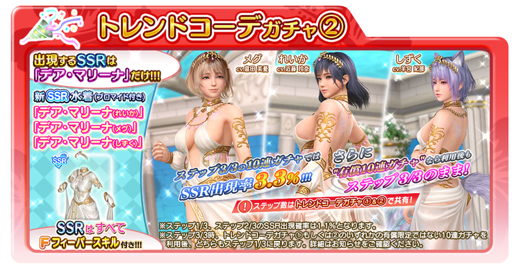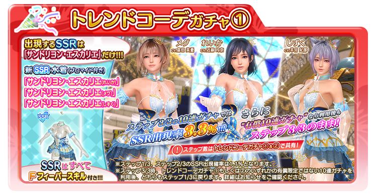 ※本ガチャで登場する水着はいずれも再登場する可能性がございます。