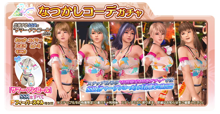 ※本ガチャで登場するSSR水着「サマー・アンコール」は、