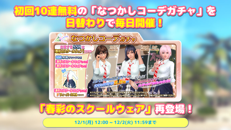 ※メンテナンスが実施される日は、メンテナンス終了後に日替わりの「なつかしコーデガチャ」が更新されます。