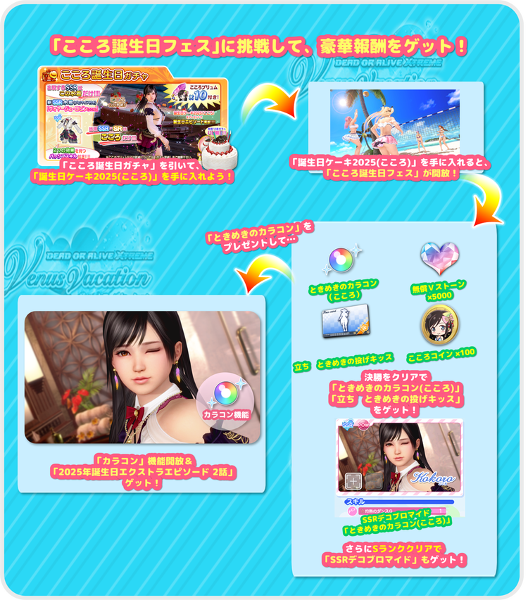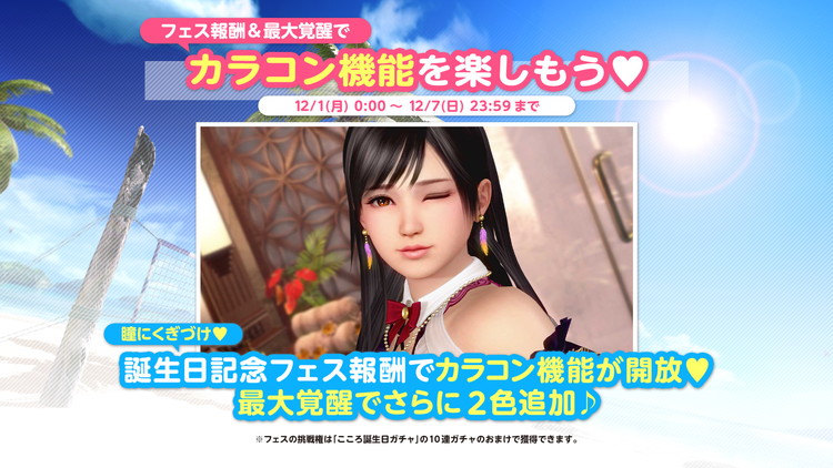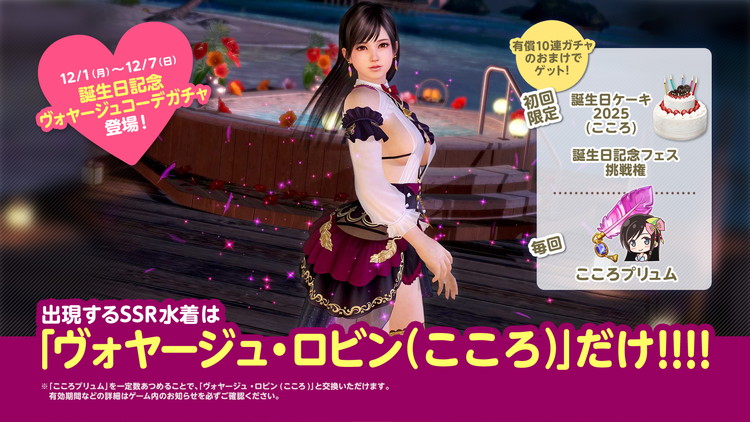 過去に登場したこころの「誕生日コーデ」が登場する2つのガチャも同時開催します。