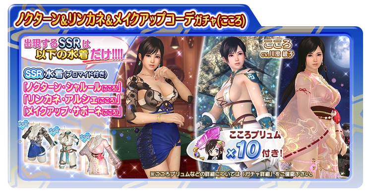 登場するSR水着が「こころ」専用の水着のみとなります。