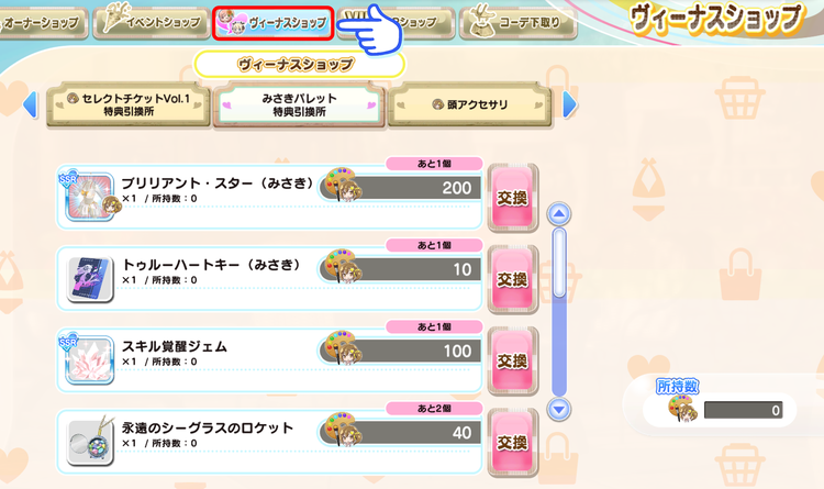 「みさきパレット特典引換所」は、「みさき」のヴィーナスショップに追加されます。