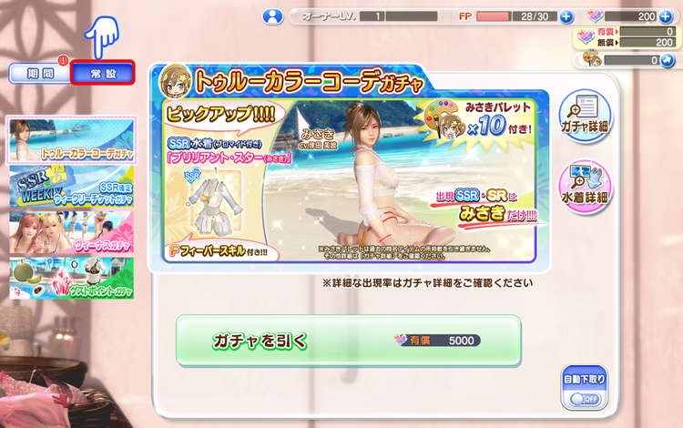 「常設」タブからガチャを引くことができます。