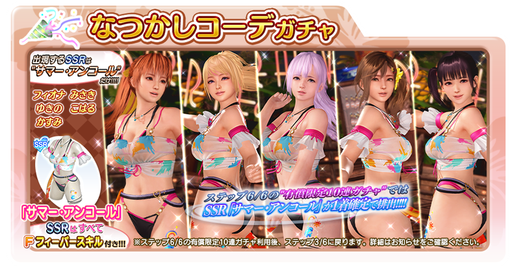 ※本ガチャで登場するSSR水着「サマー・アンコール」は、