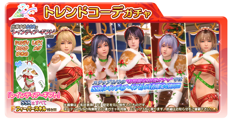 トレンドコーデガチャから登場するSSR水着「レインディア・ギフト」や、その他アイテムと交換できなくなります。
