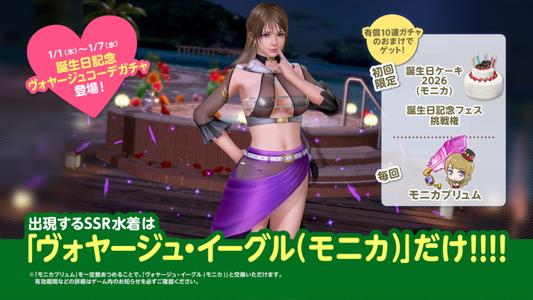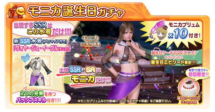 「モニカ誕生日ガチャ」から登場するSSR水着は、