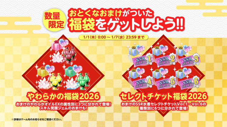 | 名称 | 商品内容 | 価格 | ![]() 「やわらかの福袋2026(STM)」 |