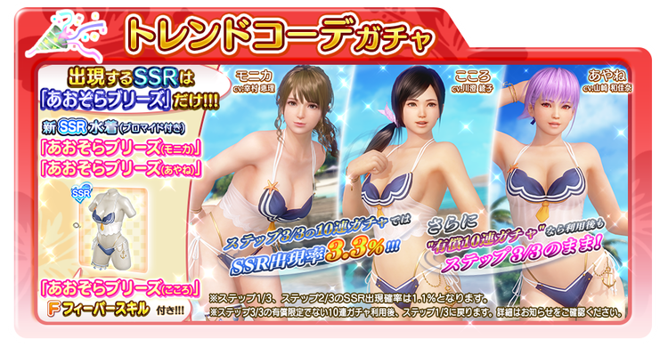■ 「トレンドコーデガチャ(こころ、あやね、モニカ)」登場SSR水着