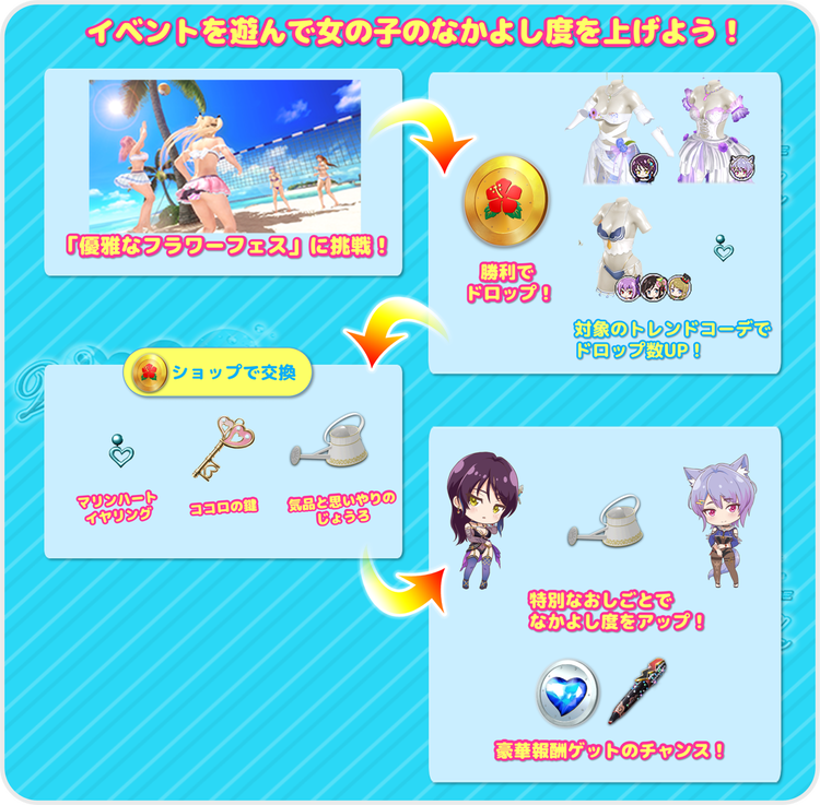 ※「ヴィーナスメモリー」および「女の子EXP」の獲得数がアップするトレンド効果は