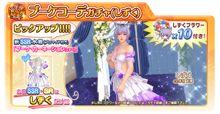 ※「ブーケコーデガチャ(しずく)」は「10連ガチャ限定」「有償Vストーン限定」となります。