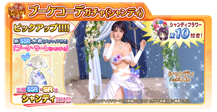 ※「ブーケコーデガチャ(シャンディ)」は「10連ガチャ限定」「有償Vストーン限定」となります。