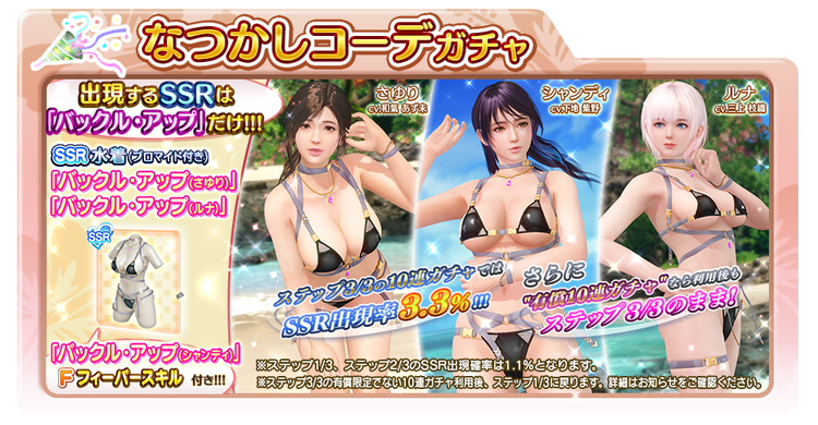 ■ 「なつかしコーデガチャ(シャンディ、ルナ、さゆり)」登場SSR水着