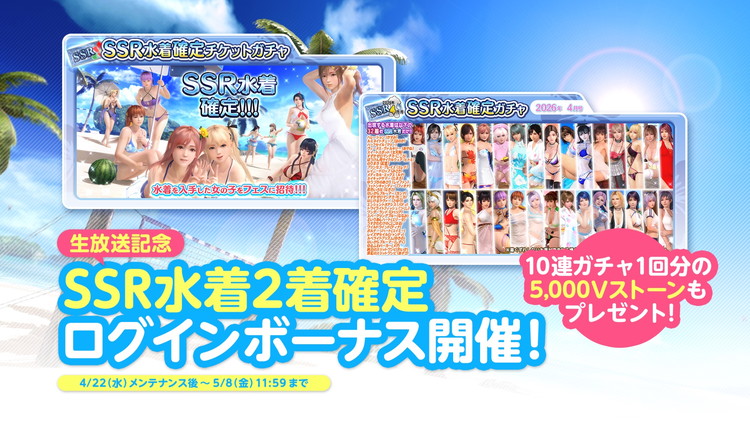 RP数が放送中に1,000RPを超えると、10連ガチャ1回分の5,000Vストーンを入手できます!
